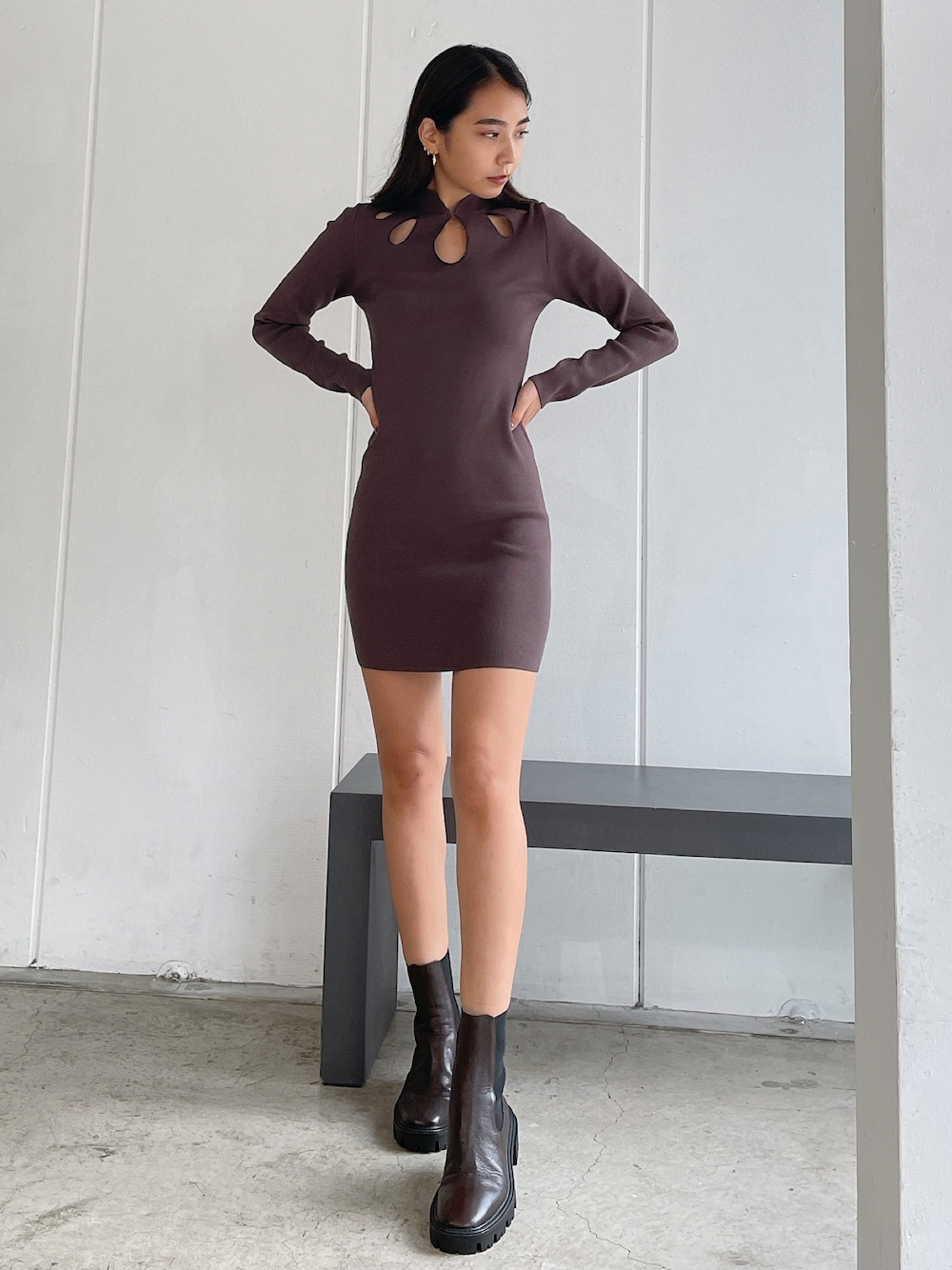 Vicente👖(Vicente)のワンピース「Keyhole stretch onepiece」を使ったコーディネート