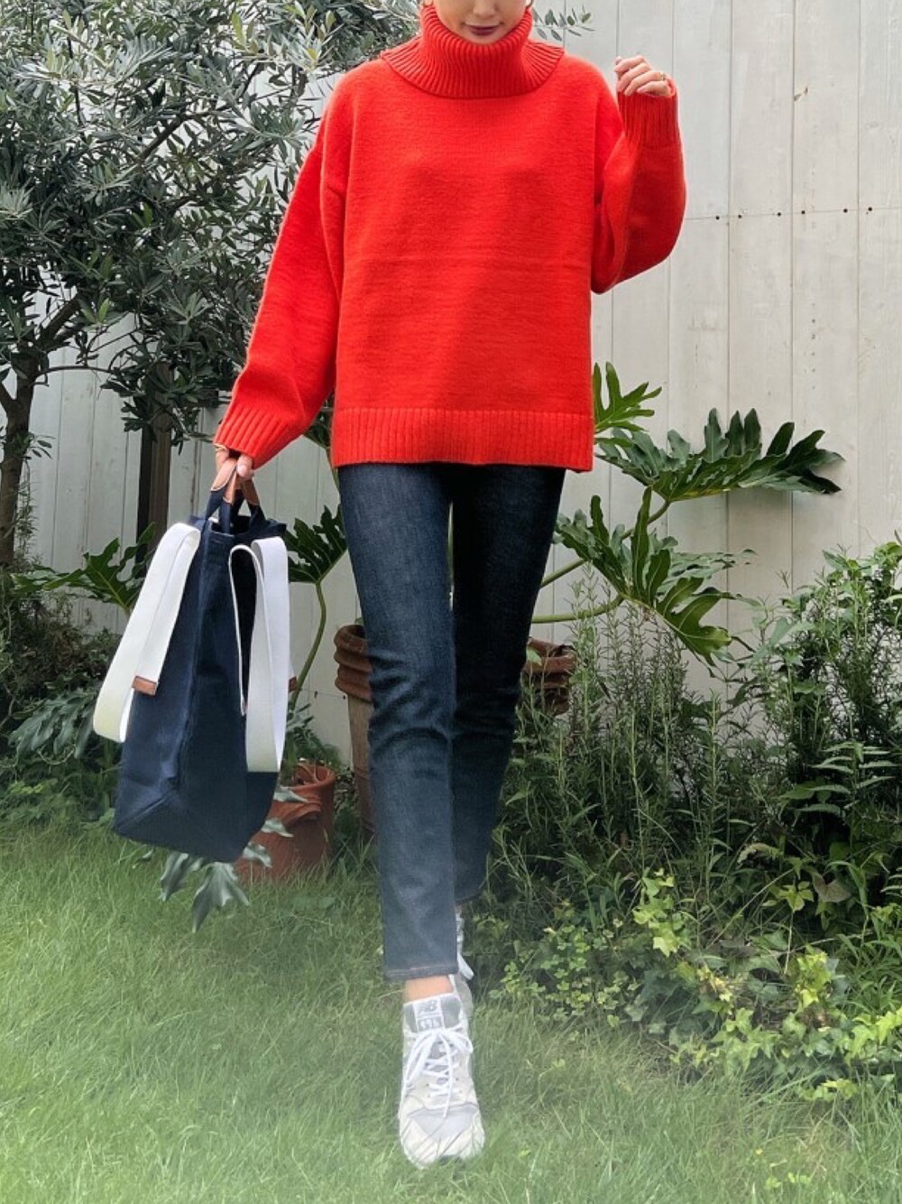 Vicente denim×ニット大人シンプルカジュアルコーデ キレメカジュアルにスニーカーを合わせて!コーデ‼︎
