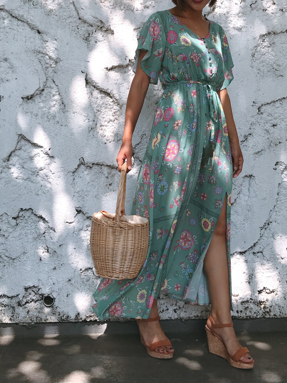オリジナル柄 大胆に入ったスリット 大人かわいいVicenteのマキシ🌴💗 身長157センチの私でもビーチサンダルなどで合わせられる丈感です♡♡