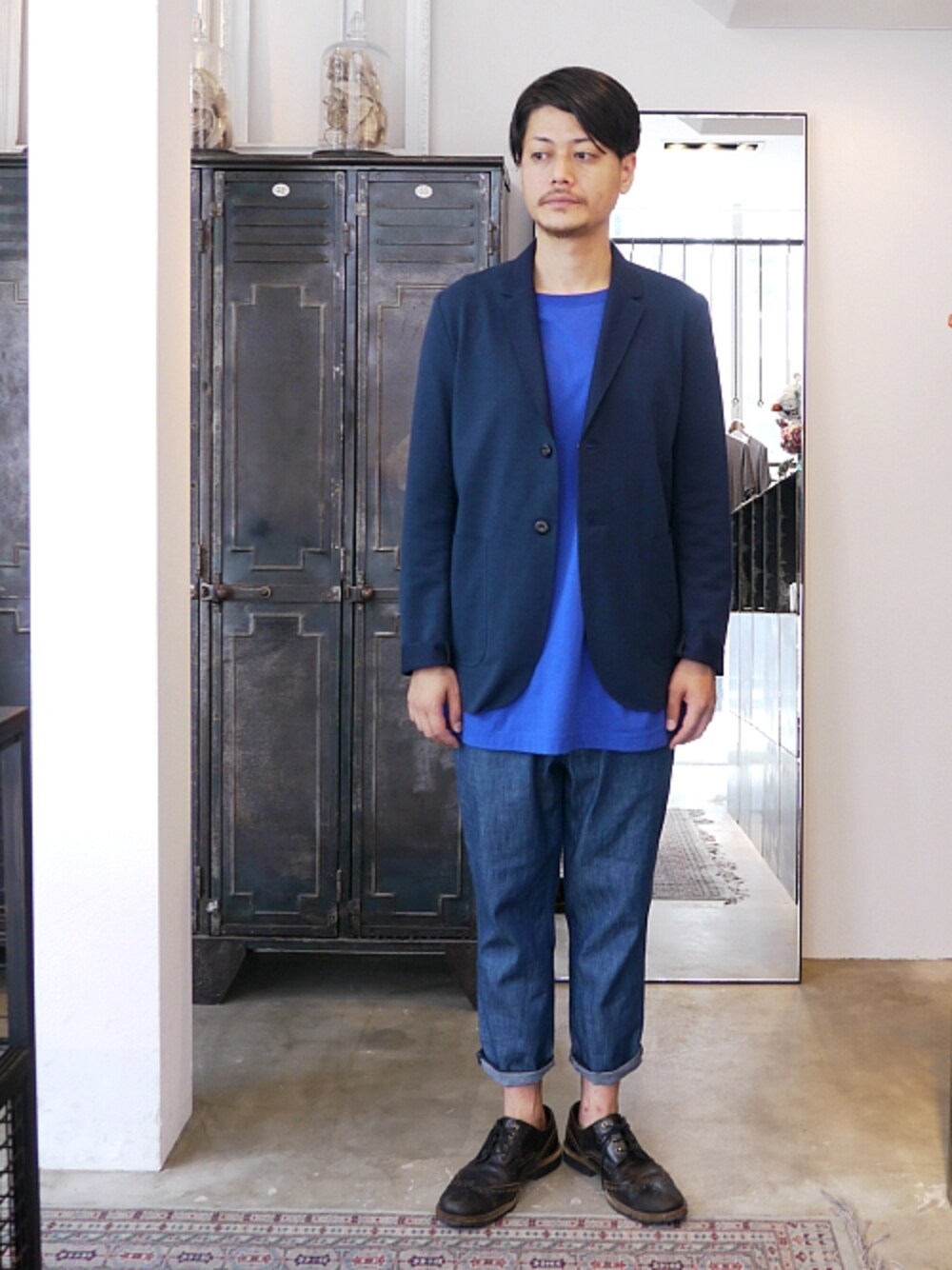 ブルーは男の色って俗に言うので男は黙ってブルーコーデでとふと思ってブルーで。。 もういい加減ナイスミドルな歳なんでジャケットスタイルが落ち着くそんな初夏なまだ7月。。 9月まではそれはそれは猛暑でしょーね。 ううううう。。