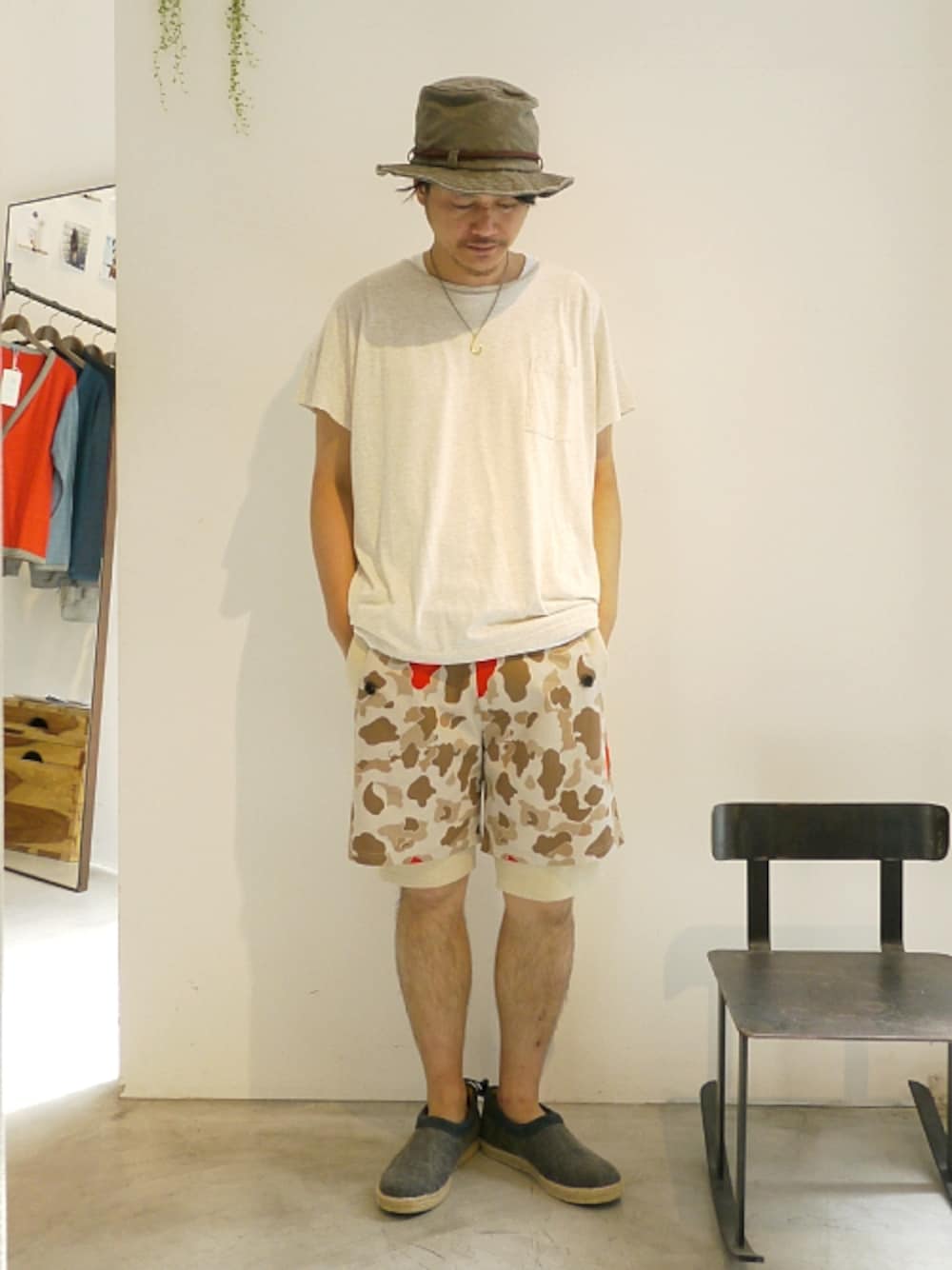 京都発のドメスブランド " merph " のカモフラショーツ。 元々レイヤードされたパンツなのでシンプルなトップスでもインパクトあります! 自転車乗る時とかもハマるし着用感もとてもいいです!!