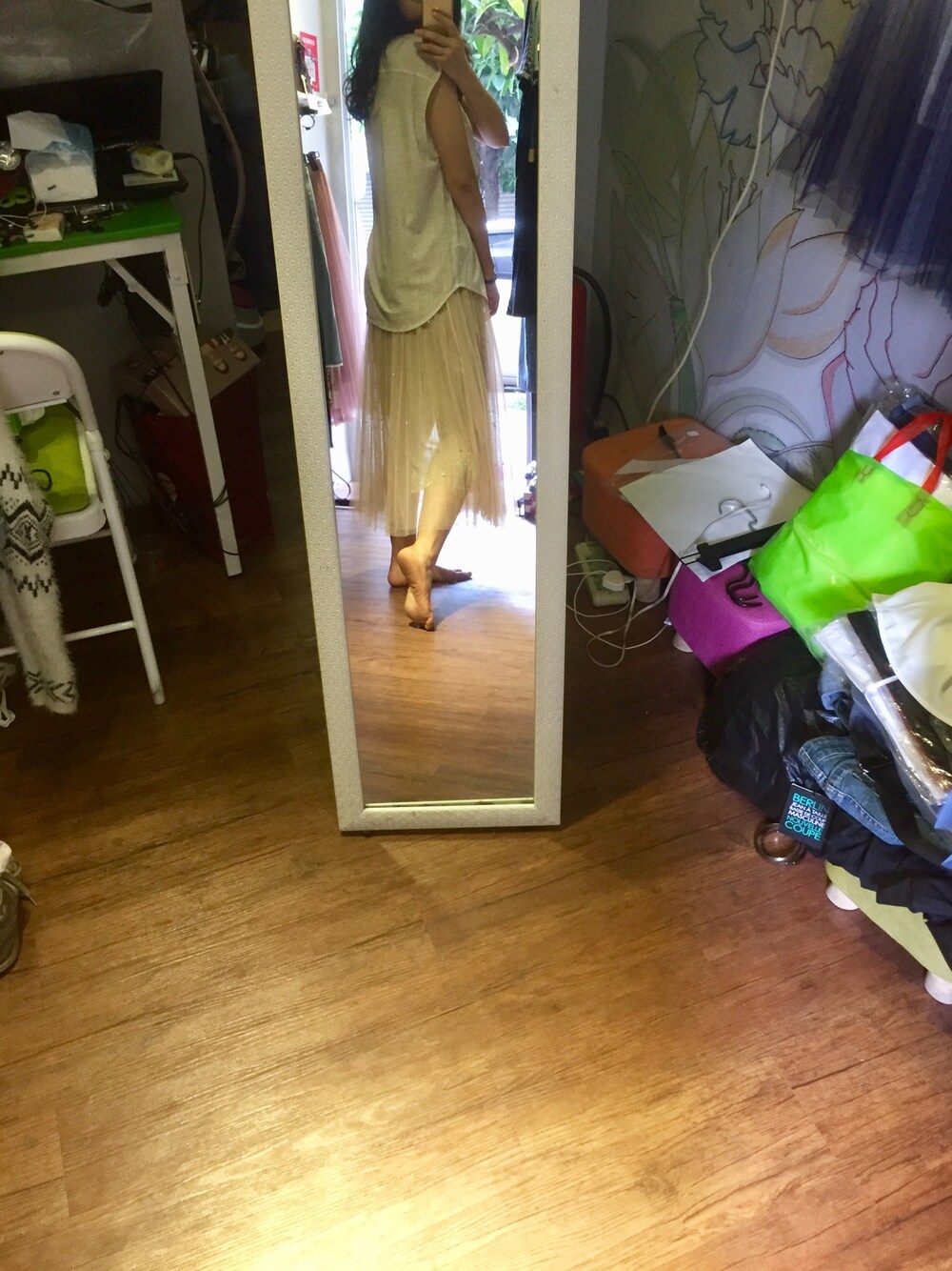 麻色的麻棉半袖衬衣加半透的纱裙 慵懒而且性感