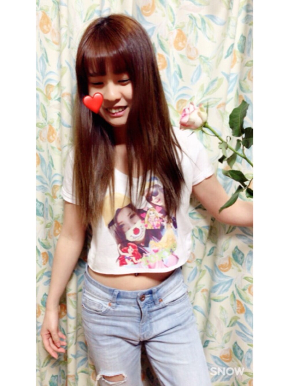 卒業のお祝いに頂いたバラと🌹 このTシャツは自分で作りました。 ベースは無地の白Tで、 フォルダーの写真を加工して そのままTシャツに プリントしましたーー👌 親友にも同じものをあげます😊 で丈を短くちょっきんしました✂️ なかなかお気に入り💕