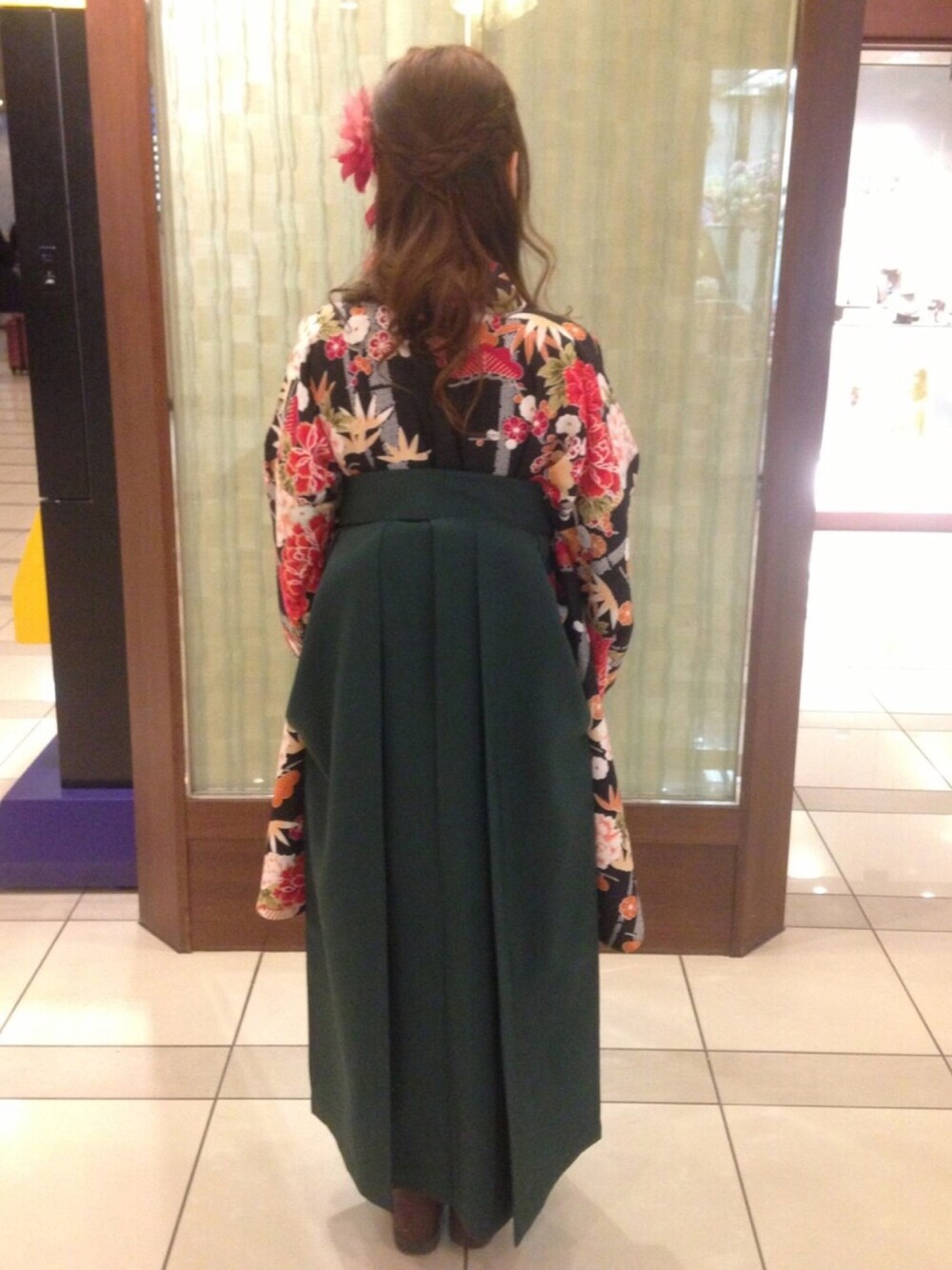 今日から社会人! そして明日から東京です❤ これから私服を着る機会が 減ると思うと寂しいですね😂 卒業式に着た袴です! 成人式は赤だったので、 深緑と黒地で落ち着いた色に!