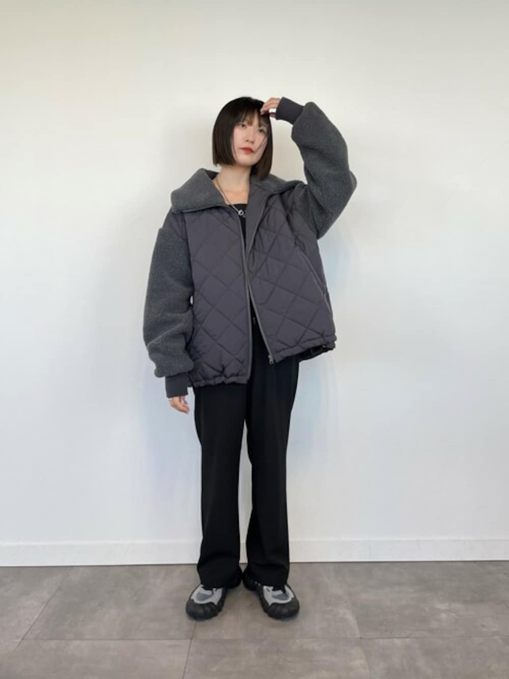 ◾︎ボアブルゾン 身幅も袖幅も大きく中の服がごわつかない 横から見た背中のふくらみがかわいい ジップを全閉めにすればマフラー不要 ◾︎ワイドパンツ ゆるっと楽なのにシルエットが超きれい ウエストゴム+紐で調節可