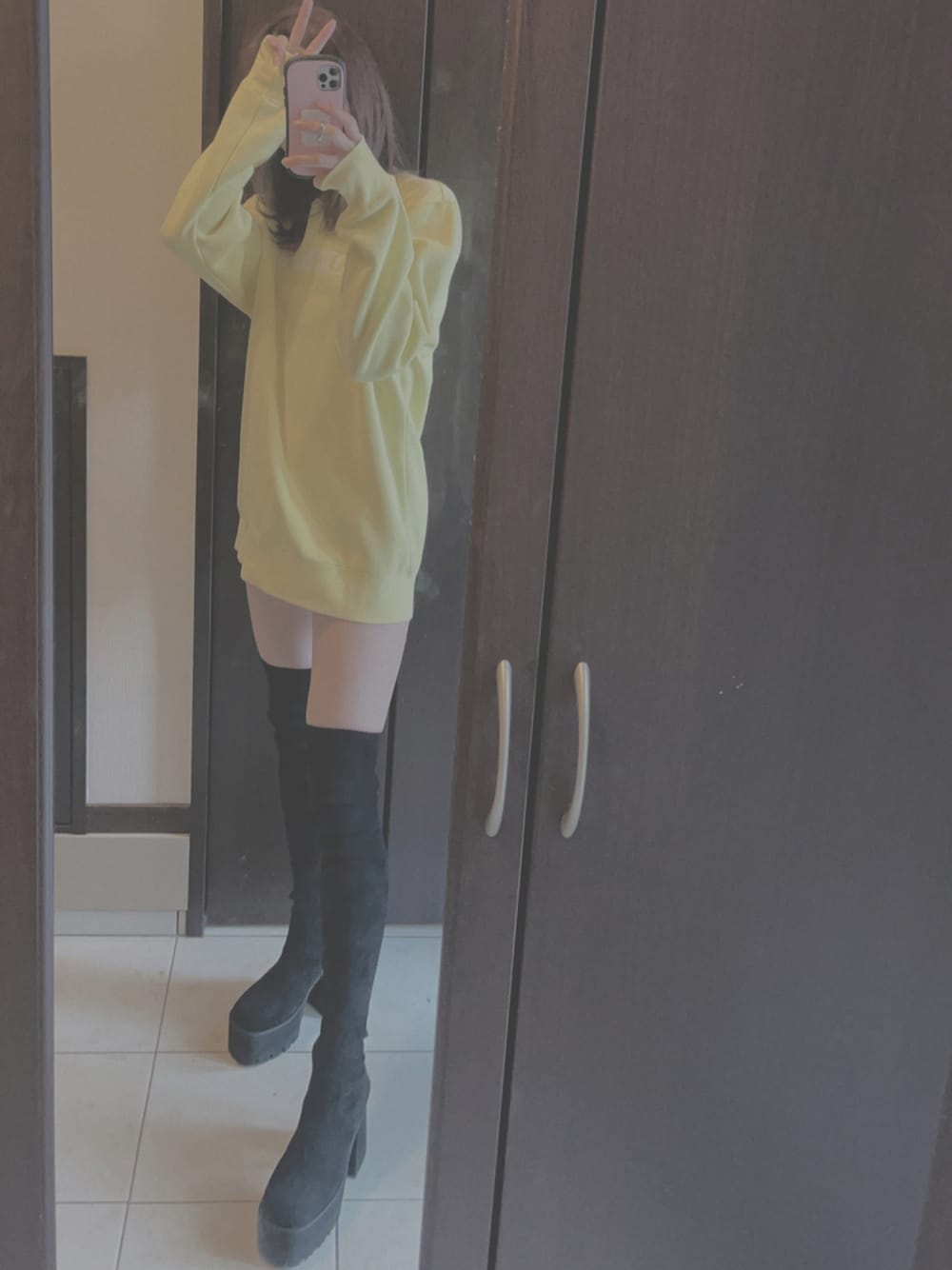 ずっと欲しかったEMODAのニーハイブーツ 足大きいから履くまでドキドキだったけど入ってよかった~ ヘビロテ確定🤍