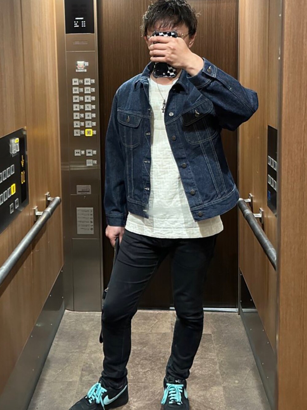 エレベーターボーイくんのデニムパンツ「D-STAQ 5-POCKET SLIM JEANS/スリムテーパードジーンズ」を使ったコーディネート