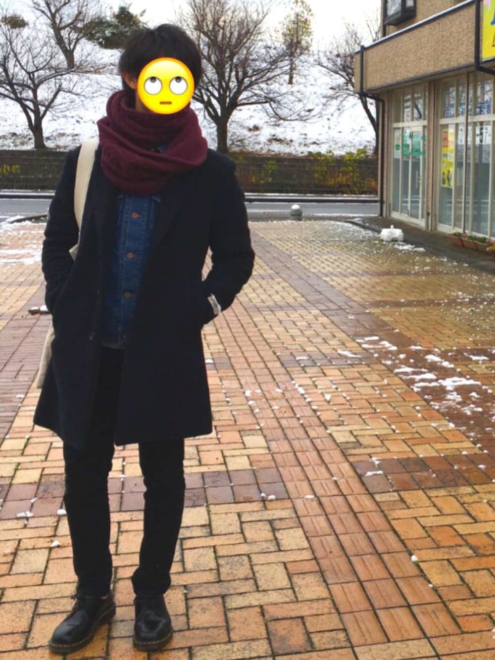 今日めちゃ寒かったですね! このあいだげんじー博士がやってたチェスターコートにジージャンいれるのパクりました!中にニット着てるので暖かい! スヌードの巻き方が雑なのは内緒