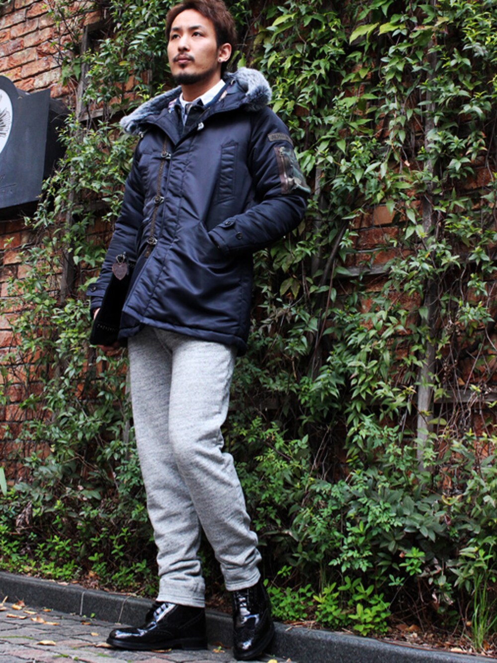 NAOTO 178cm 75kg ジャケット: XEROSEN×ALPHA INDUSTRIES INC.×Dennis Morris XRSN-C001D N-3B TYPE JACKET(Navy) SIZE:M シャツ: SCOTCH&SODA COTTON L/S PLAIN SHIRTS/(White) SIZE:M デニムジャケット: Nudie JeAns "PERRY" Denim JACKET(Dark-Indigo) SIZE:M パンツ: EDITOR'S Rib Sweat Pants(Gray) SIZE:M シューズ: ROSSO ARTIGIANO "LORD" Glossy Leather Wing Tip Boots(Nero) SIZE:42 ネクタイ: IVY PREPSTER Native pattern Toweling tie(Navy) SIZE:F バッグ: HTC CLUTCH BAG MEDALION BLACK(Black) SIZE:F