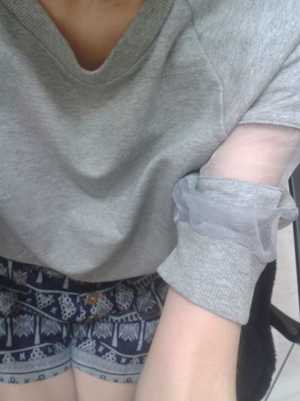ORENDA #時髦透視短袖上衣 搭配 #連續緹花反折牛仔短褲~~兩件都是代言人 路嘉怡 強力推薦款!上衣在袖子上強調透視與運動橫條紋風.短褲則是今夏流行的民俗圖騰風格.