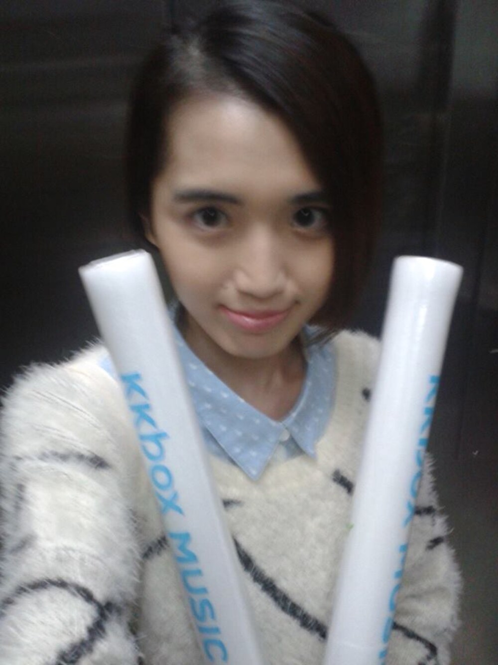 我內裡搭的這件是ORENDA的[#這版型賣翻了水玉長版襯衫洋裝 (淺藍/S) ]外面搭[#交叉線亮亮蔥絨條針織毛衣 (杏色/F) ]