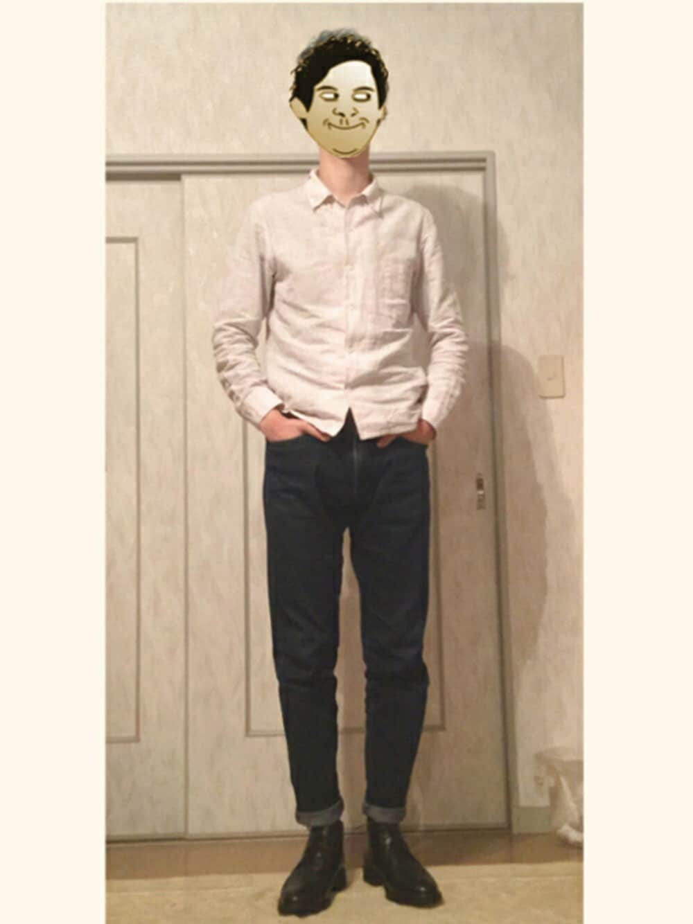 大学に来ていく服がない人向け参考。スニーカーじゃなくチャッカブーツにすることで程よく引き締まった雰囲気になる...気がする(小声) 靴で印象は変えられる一例