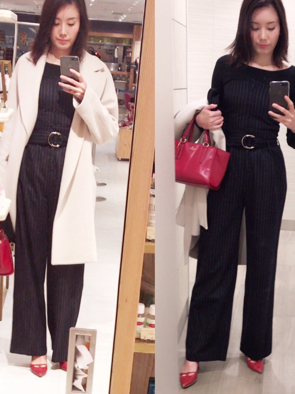 コート着たバージョン♡ 脱いだバージョン♡ マニッシュスタイルです。 髪型はあえて何もせずラフにしてます。