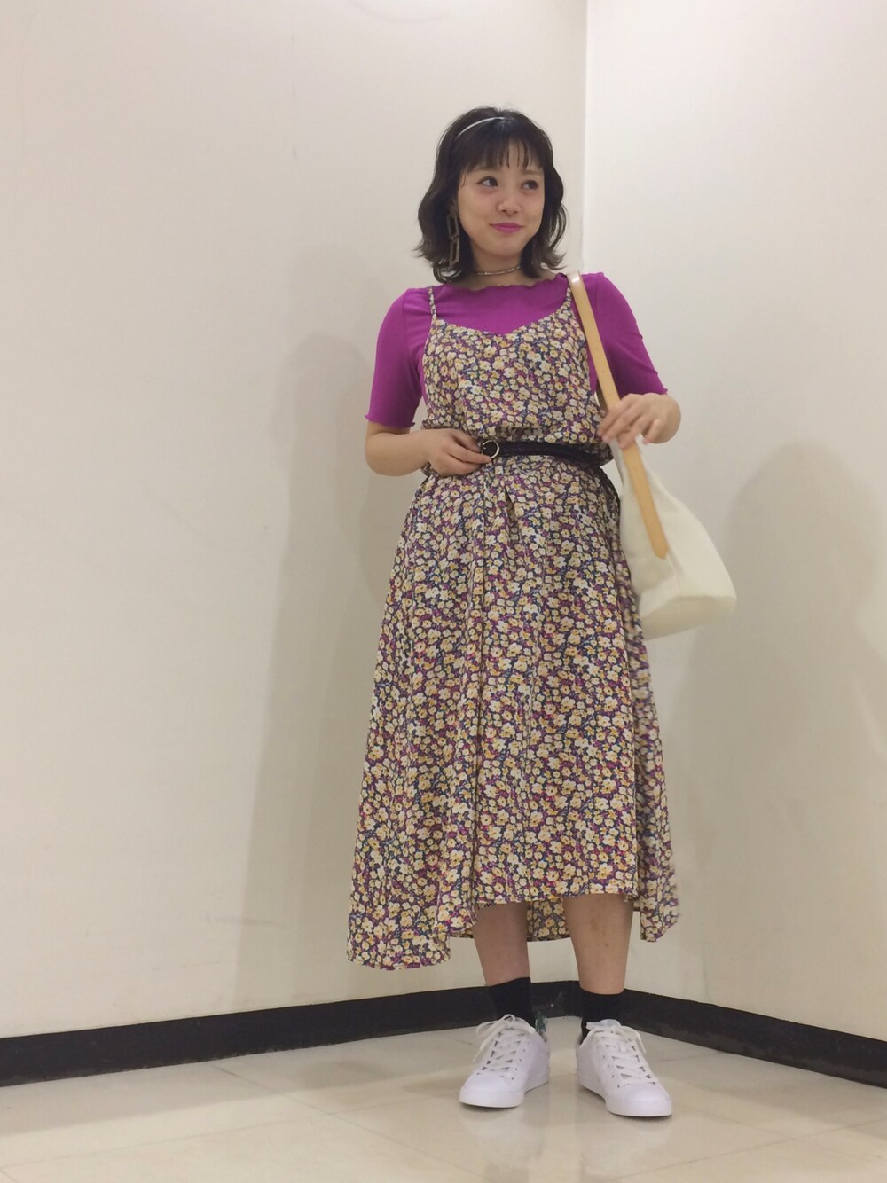 こんにちは♡ 色×色は今年のオススメコーデ! 花柄ワンピの合わせはベーシックカラーを 選びがちですが、今年は色にチェンジ😻❣️ 花の色をインナーに選ぶと 意外に馴染みますよ〜〜(╹◡╹) 試してみてくださいね♡♡ こんな感じで公園に遊びに行きたい!
