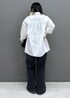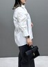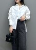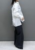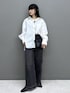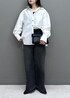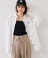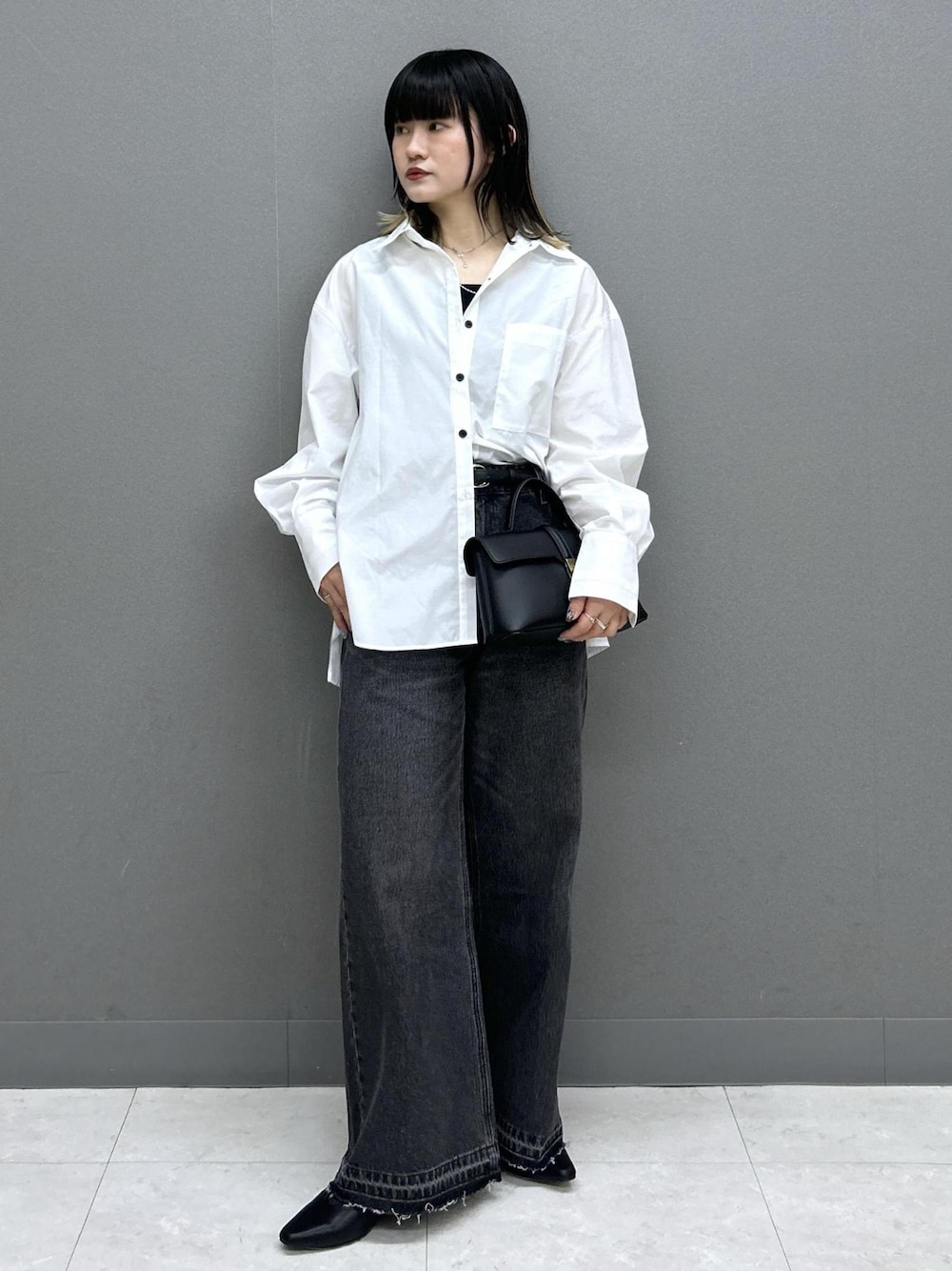 ホワイトシャツ×ブラックデニムのシンプルなスタイリングは、着こなし方が大切! 襟を少し抜いて、前は片方だけインすることで抜け感を◎ パンプスはポインテッドトゥでスタイリングをシャープな印象にしてくれます⭐︎