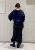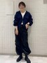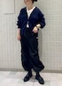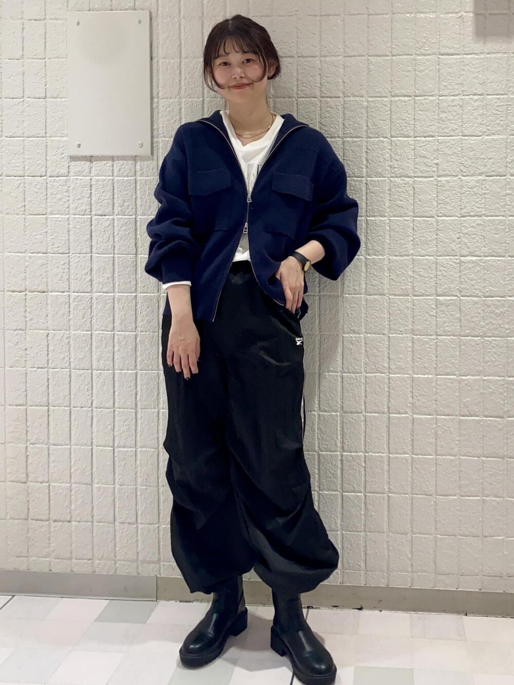 ネイビーのジップカーディガンにロゴTを合わせ、カジュアル感もだしつつ、カーゴパンツでスポーティーな要素も合わせたスタイリングに!