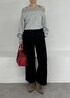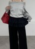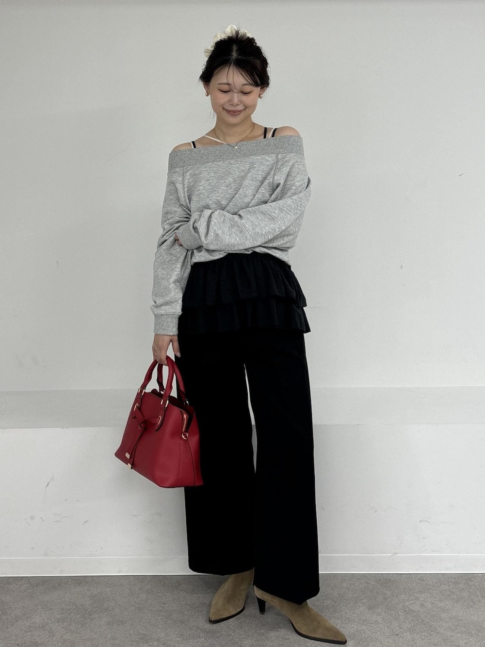 POLOのスウェットにフリルをレイヤードし、パンツスタイルカジュアル過ぎないきれいめなスタイリングにしてみました!