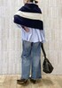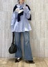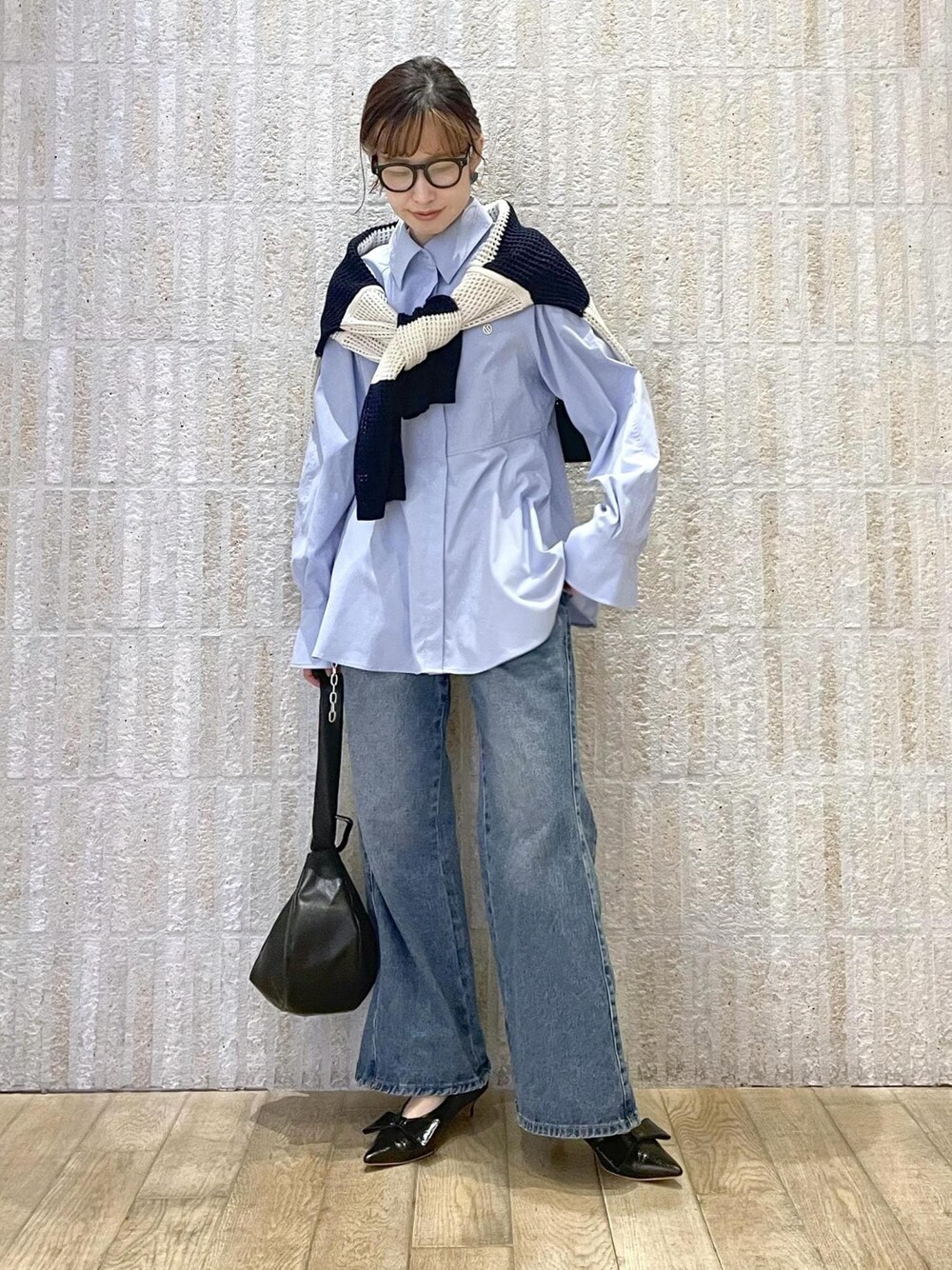 やっぱり春はデニム推し♪ 爽やかなライトブルーのペプラムシャツでメリハリを。 シンプルスタイルなのでボーダーのメッシュニットを肩掛けし、ヒールのパンプスで女性らしさをプラス。 春の大人カジュアルコーデです。