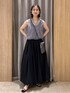 フリンジのベストを使ったコーディネート。 グレーと黒でまとめてモードな印象に。 バルーンスカートで甘さをプラスしました。
