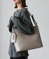 通勤シーンに欠かせないパスケースが付属した A4収納可能なトートを使ったコーデ。 グレートーンで統一してモードな雰囲気に。