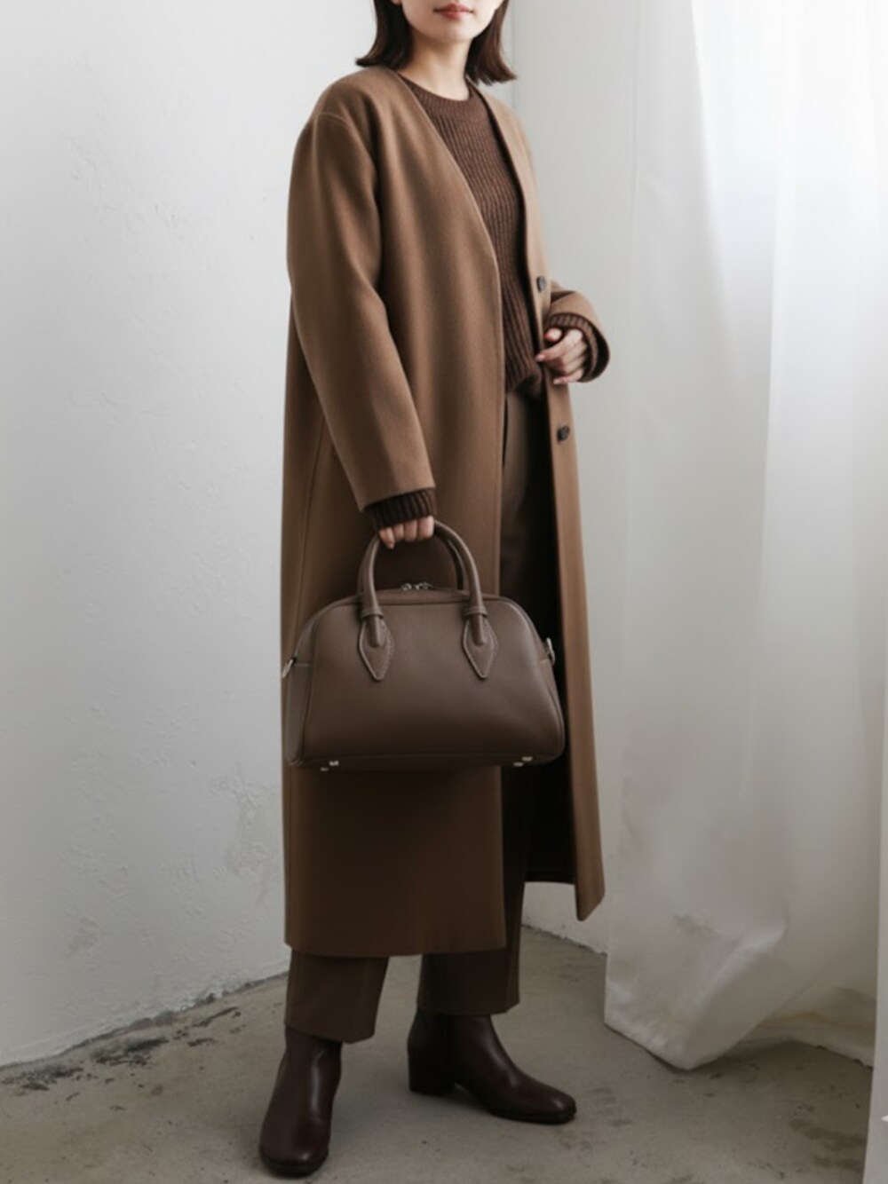 オールブラウンの秋冬コーデ☻ ワントーンコーデにトレンドのボストンバッグをあわせました。
