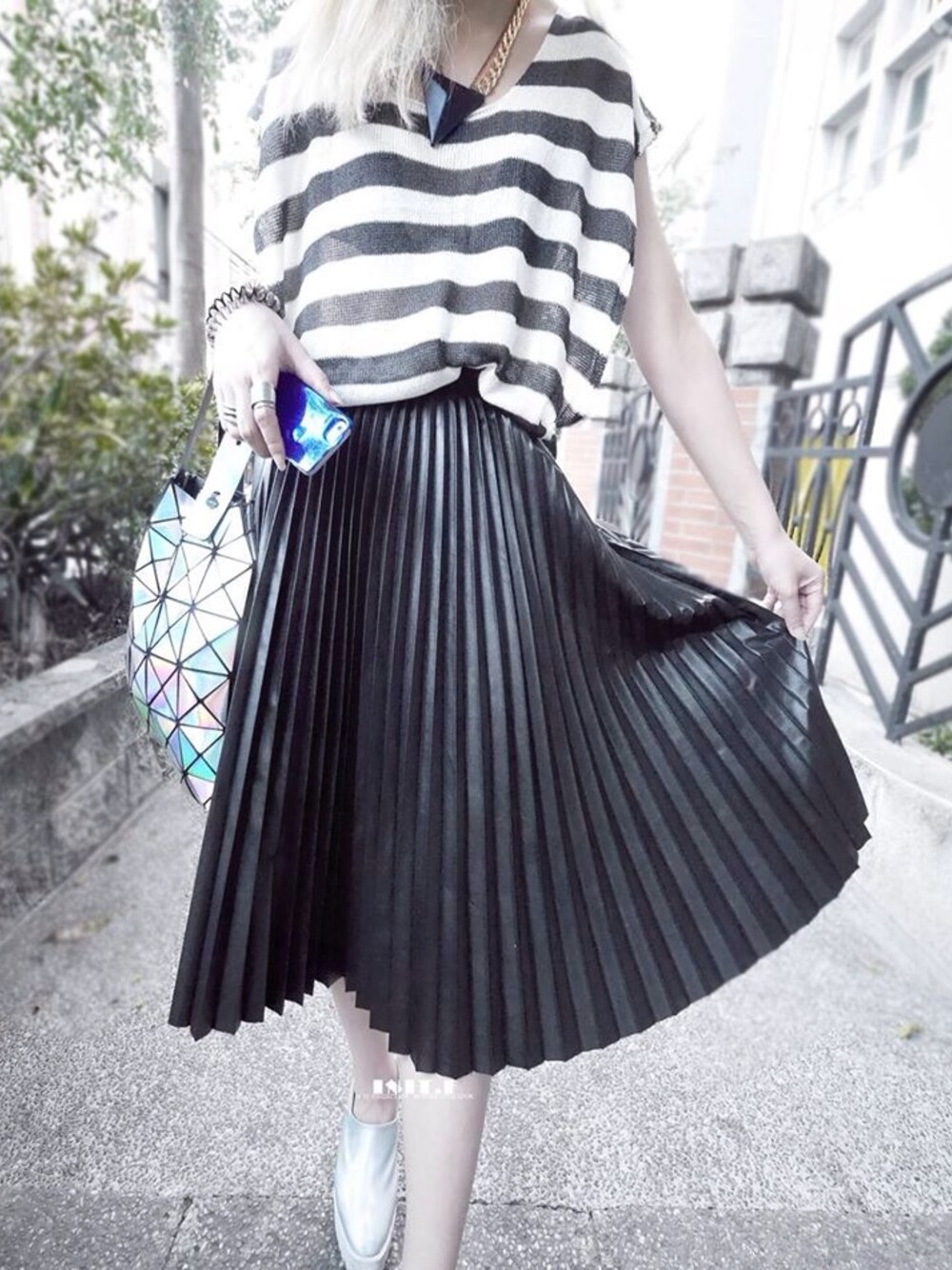 vitafoxxのスカート「高質量設計百褶輕皮裙」を使ったコーディネート