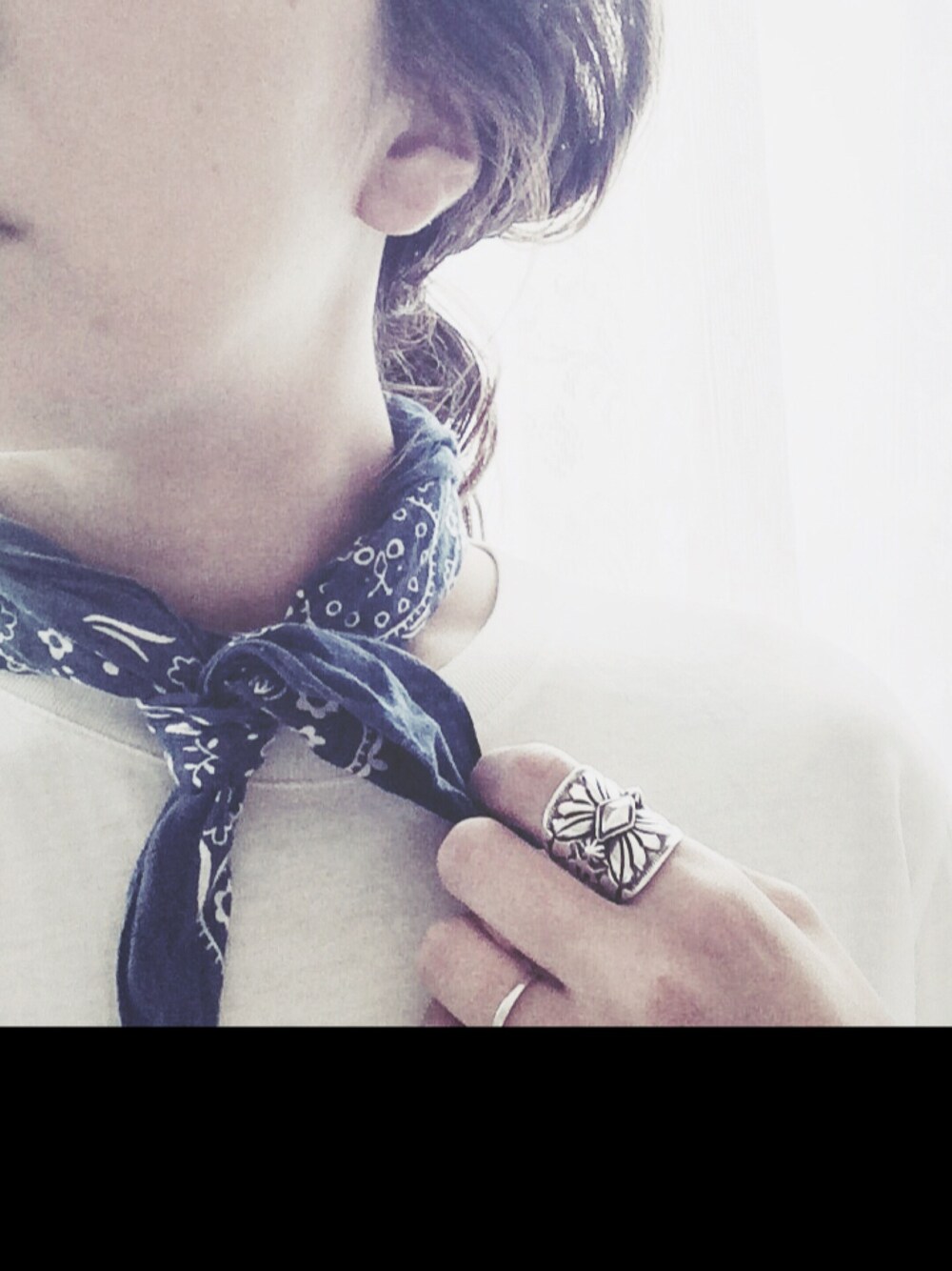 母はまだまだ暑いので、、、無地のトップスにはよくスカーフ巻きます。