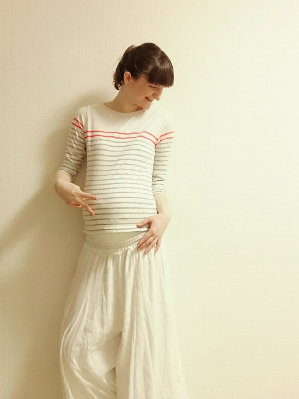 3日間、風邪でダウンしてました。 風邪薬は飲めないから、漢方や生姜湯、大根おろしにレモン汁とはちみつ、ポカリ、のど飴などで、しのぎました(笑) 生姜湯の効きが凄かったです!恐るべし、生姜湯(笑) そして、やることがないので、最近は整理整頓しかしてません(^^) 靴に続き、今日はお洋服を。 断腸の思いで、大量に断捨離しました。 すべてリサイクルにだします。 写真は、今日の格好です。 お腹のベビーちゃんと共にラブ&ピース。 風邪が治って、イベントに間に合ってよかったです。 さて、明日は、どこを掃除しようかなー!?(笑)