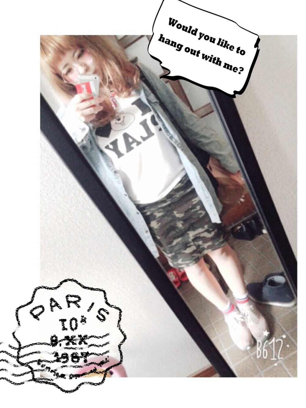 カジュアルかつ女の子っぽさを👕💓 くまたんが可愛い〜(ง ˙ω˙)ว
