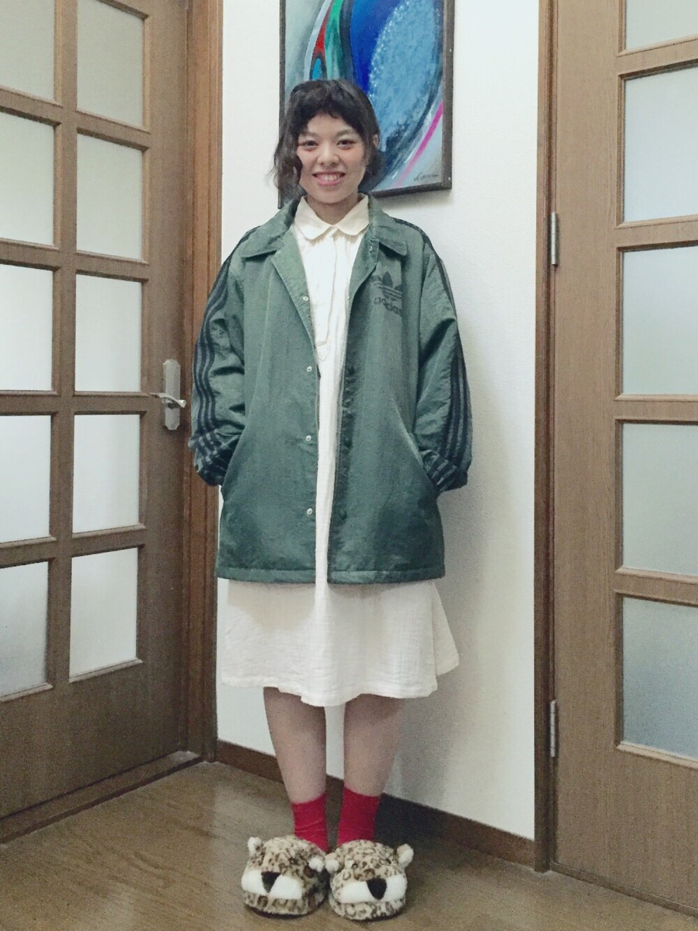 2015ねん 素敵な お洋服に たくさん 出会いました 2016ねん も 息のつまるぐらい 素敵な 出会い がありますように いただきもの の 古着ワンピース と おとーやん から もらった アウター ヴィンテージ と 呼んでもいいのでしょうか あしもと に ひっそりと トラさん を 添えて 。