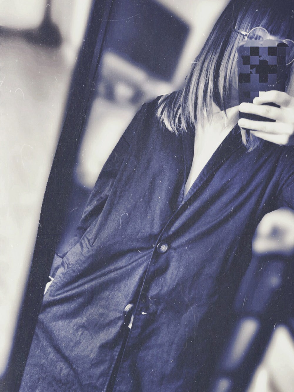 ブラック系のチェスターコートを着用したレディースの秋コーディネートの1枚目の写真