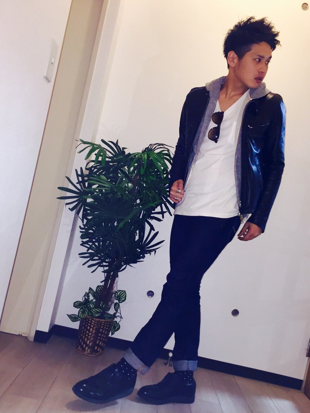 keiのライダースジャケット「ラムレザーシングルライダース」を使ったコーディネート