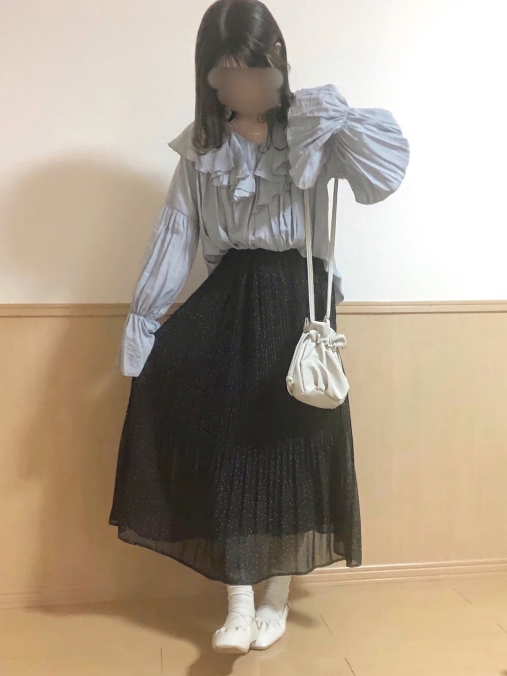 ご覧くださりありがとうございます🌷 archivesのブラウスはフリフリなので 首周りにボリュームがでて華やかに見えます✨ トップスをメインにしたかったので、ボトムスと小物はモノトーンでスッキリさせました!