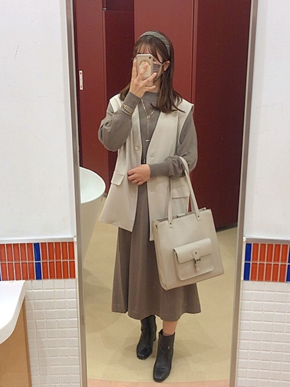 みんのトートバッグ「【WEB限定】アウトポケット合皮トート」を使ったコーディネート
