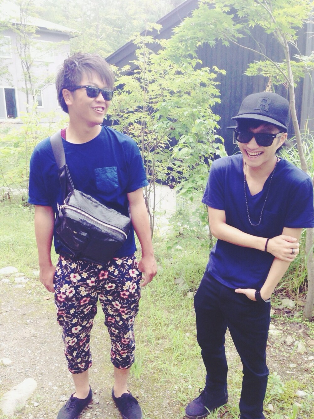 久しぶりに会った友人と。 青いTシャツをメインにコーデしました。