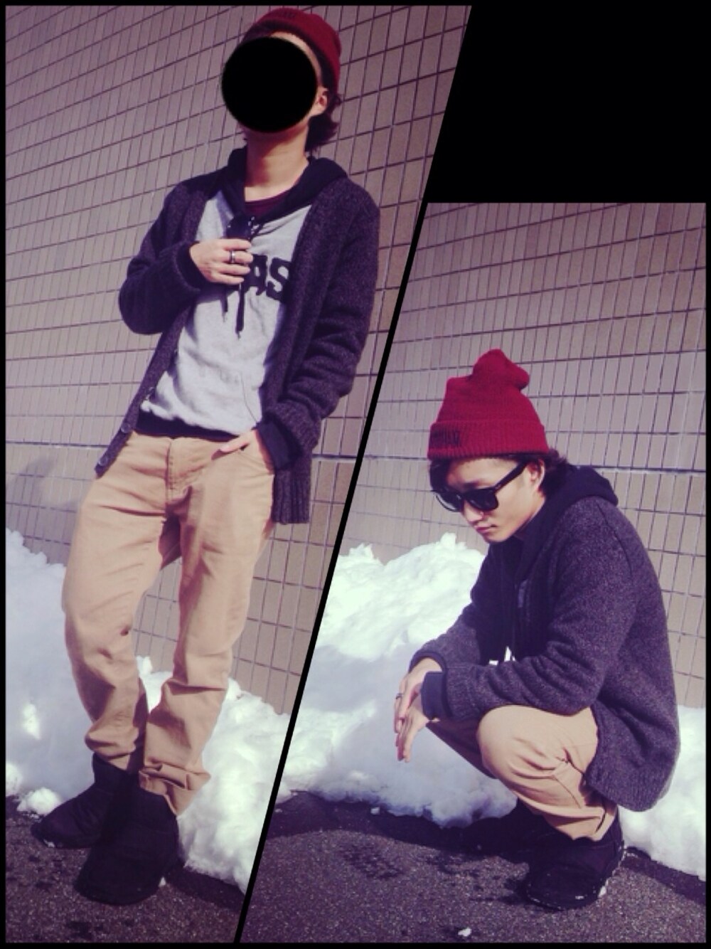 寒さと眩しさに対応できるコーデにしてみました。