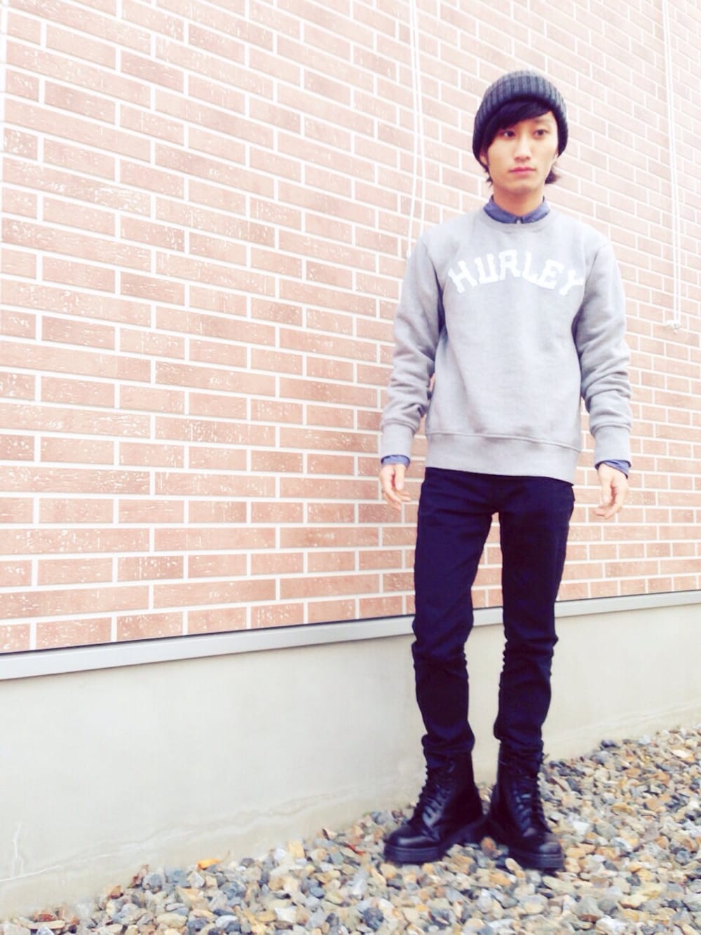 スウェット×シャツ×ニット帽。 最近お気に入りのHurleyのスウェットをメインにコーデしました。