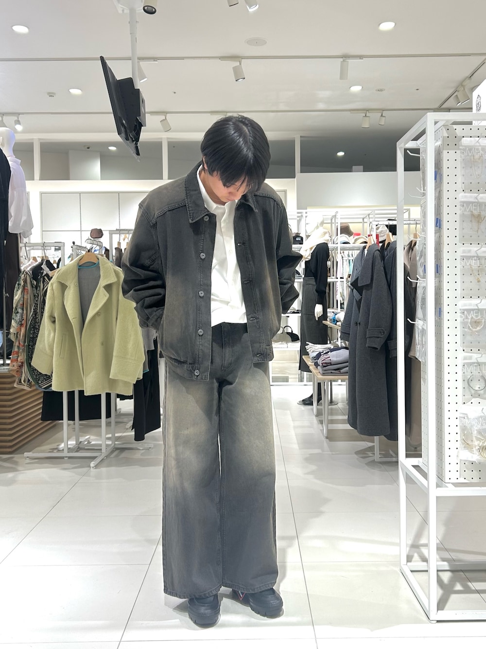 ご覧いただきありがとうございます!新作のデニムセットアップを使ってコーディネートをしました!カジュアルすぎないようにシンプルなシャツと革靴を合わせてみました!トレンド感のあるダメージ加工とワイドなシルエットがとてもかっこいいのです! ぜひ店舗でもご覧になってください!