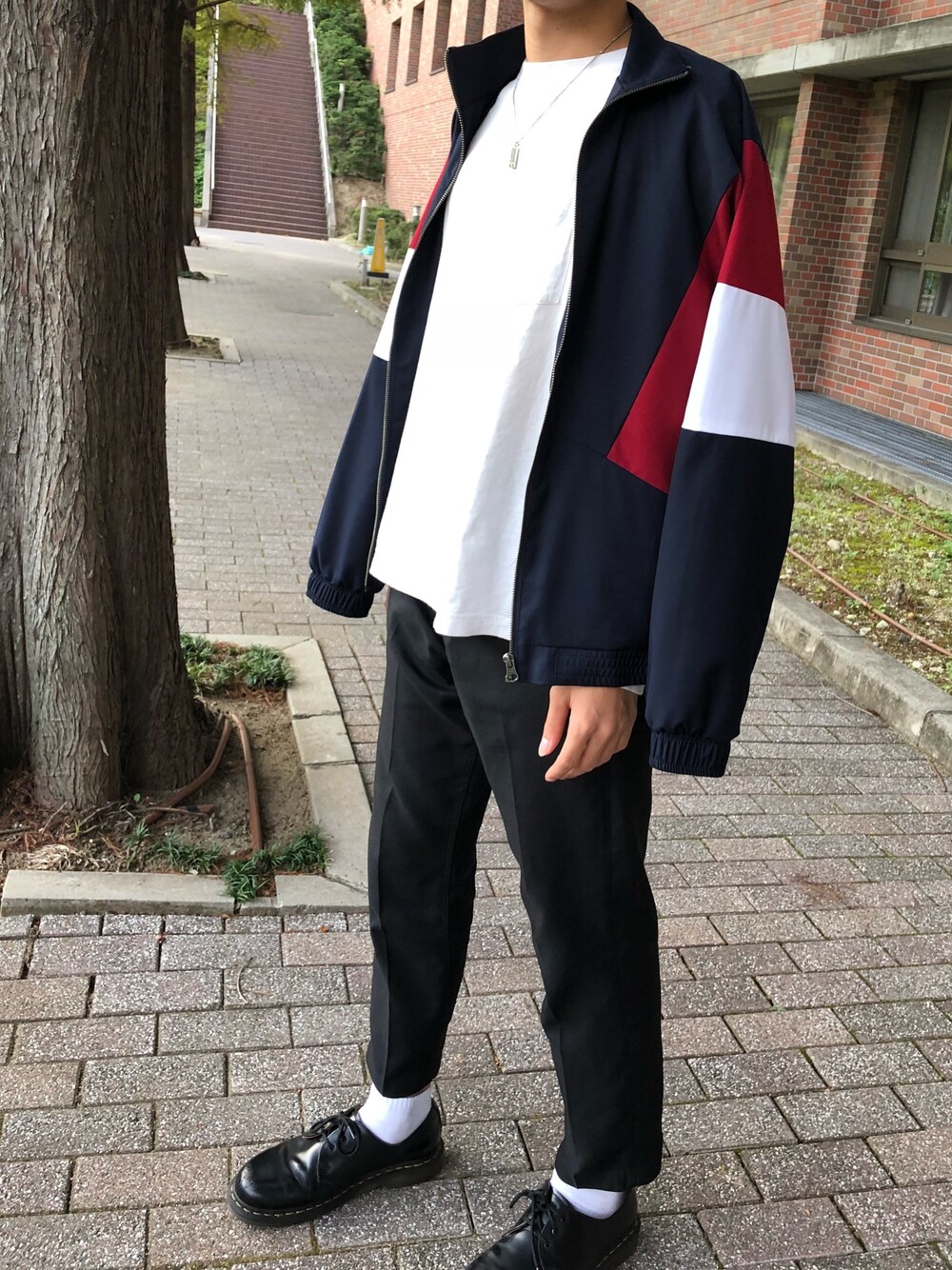 こんばんは 今回は去年発売のsense of placeのトラックジャケットを合わせたコーデです。 1枚で存在感がすごくてカッコいいです! いまの時期に一番ぴったりです。