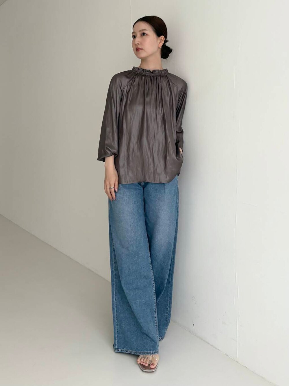 前後2WAYで雰囲気を変えて着用いただけるギャザーブラウス。 光沢感のあるお素材を使っているので、艶感が可愛いですよ◎