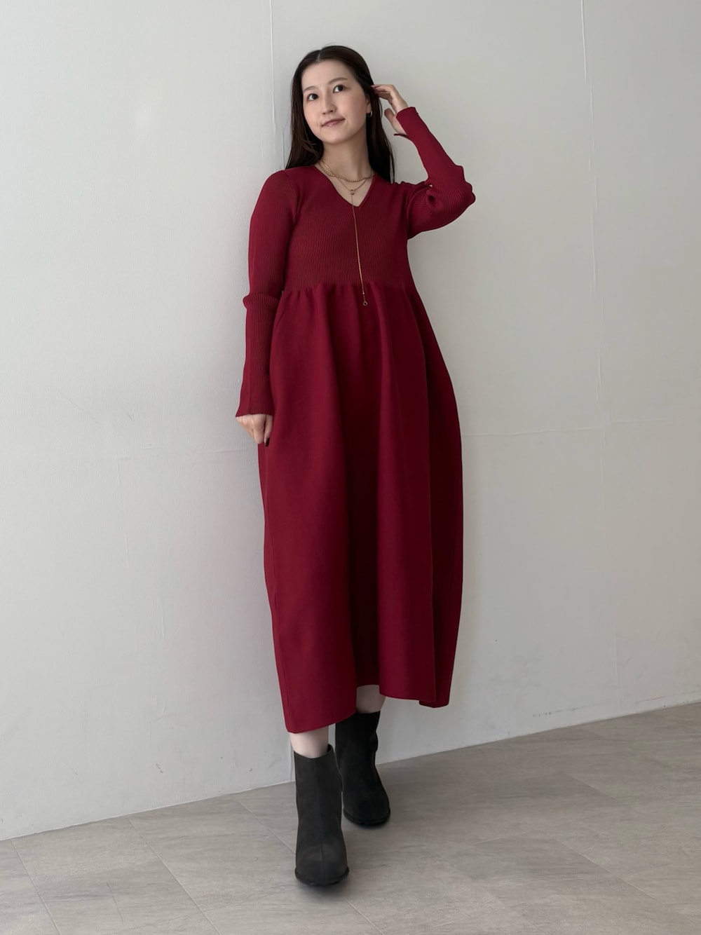 去年人気だったワンピースが今年も登場! 今年は2サイズ展開に◎ 立体的なシルエットが女性らしさを出してくれて◎ Vネックでデコルテも綺麗に見せてくれますよ。