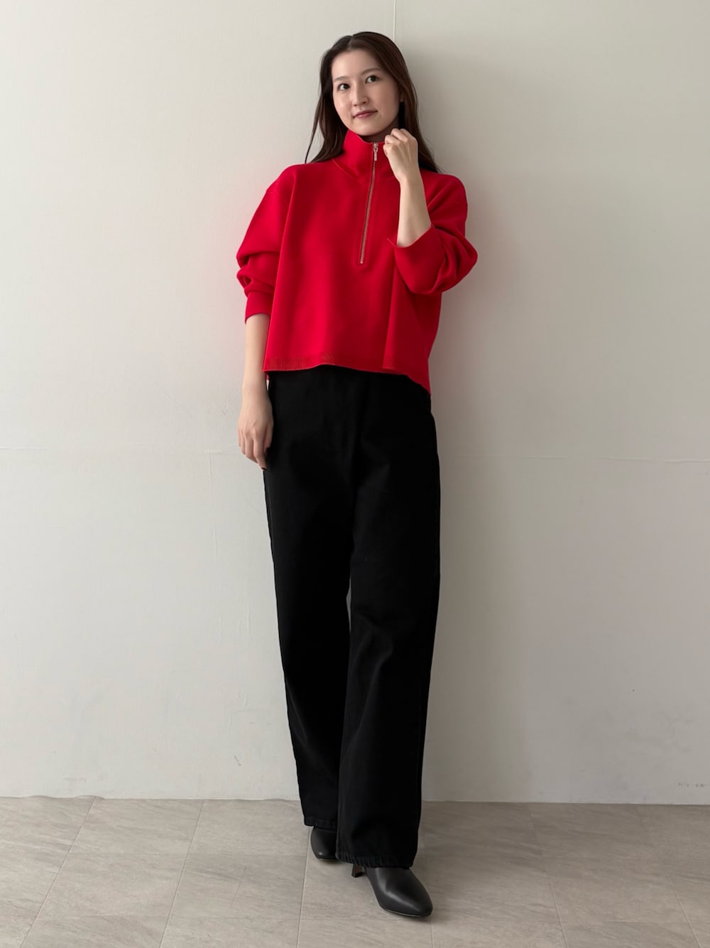 大人カジュアルスタイルには欠かせないハーフジップニット。 パキッとした赤色が可愛い、オススメニットです◎