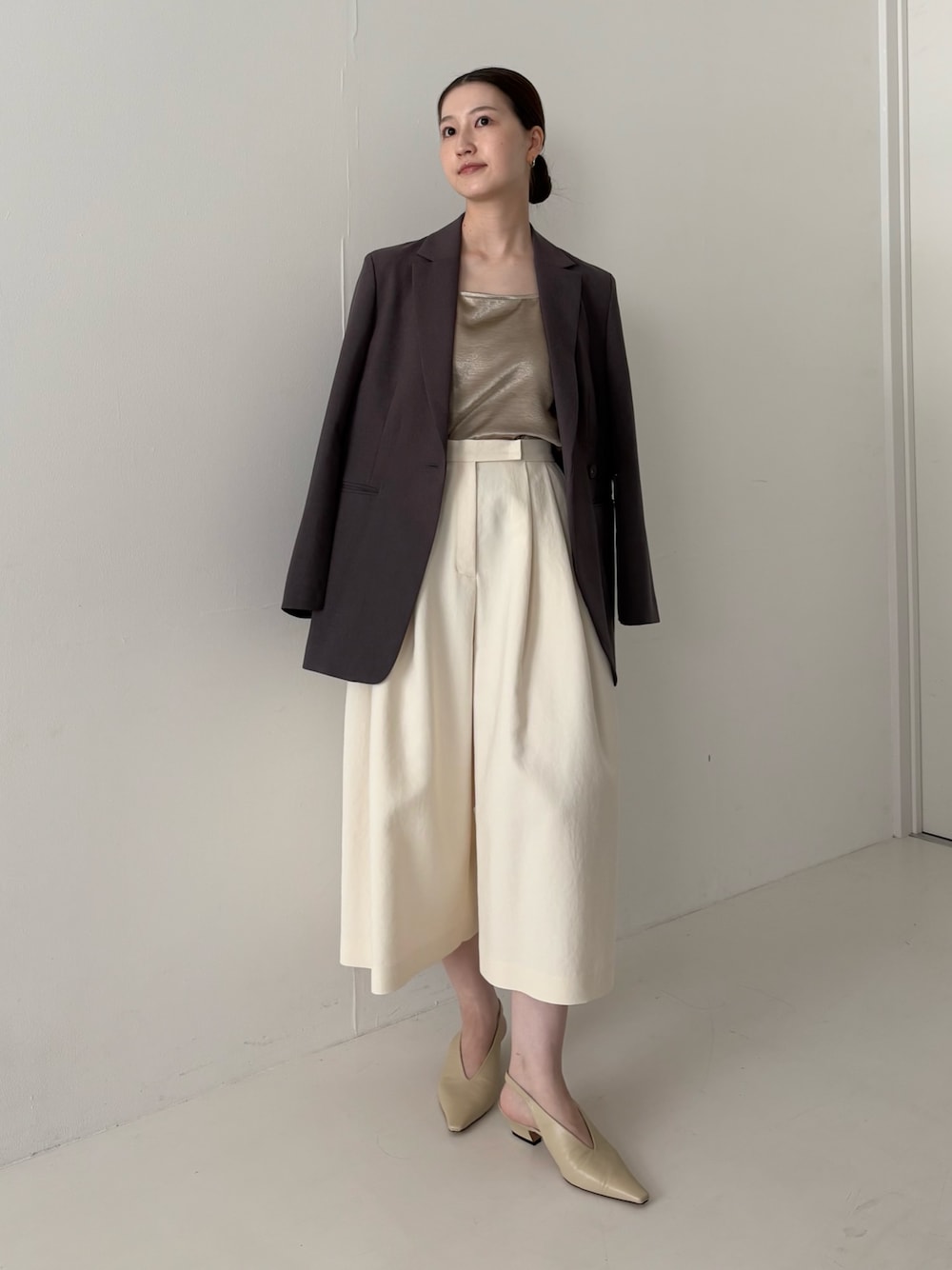お袖に施されたジップで雰囲気を変えて着用できるジャケット! 防シワ機能付きなのも嬉しいポイントです◎ スカート感覚で着用頂けるタックパンツは、パンツが苦手な人にもおすすめのアイテムです!