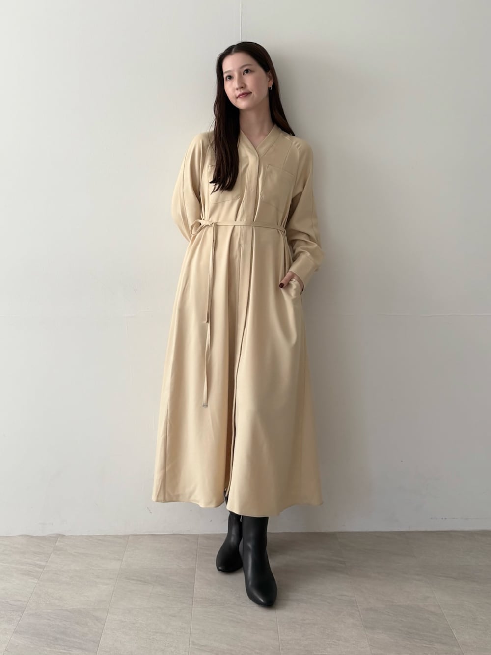 UNA(URBAN RESEARCH ROSSO)のワンピース「ポケットデザインVネックワンピース」を使ったコーディネート