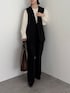 国内産の上質なお素材を使用したジレとパンツ。 ジレは、インナーのデザインを邪魔しないシンプルなデザインがポイント! パンツは長時間の着用でもストレスを感じさせない履き心地が魅力的です◎ ジョーゼットのブラウスは布帛ライクなジャージ素材を使用しているので、綺麗見えするのに楽に着用いただけます◎ ゴールドのボタンがさりげないアクセントになって可愛いですよ。