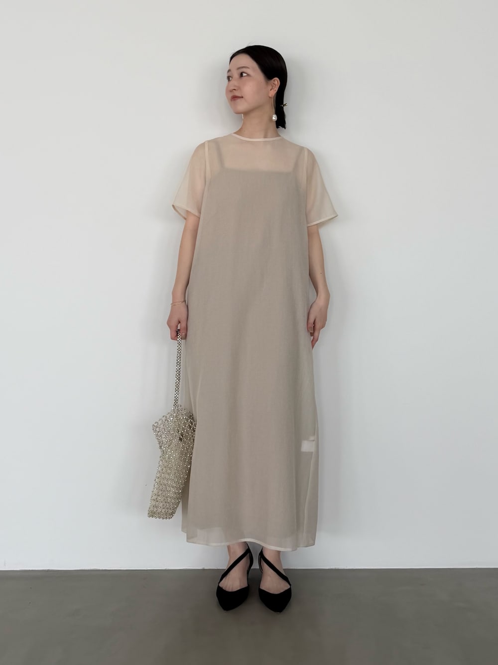 UNA(URBAN RESEARCH ROSSO)のワンピース「ハーフスリーブオーガンジーバックオープンドレス」を使ったコーディネート