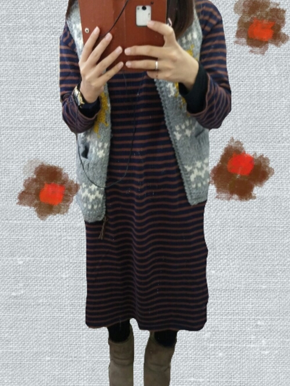 ボーダーワンピにネイティブ柄ニットベスト。 エミューでぬくぬくでした♡