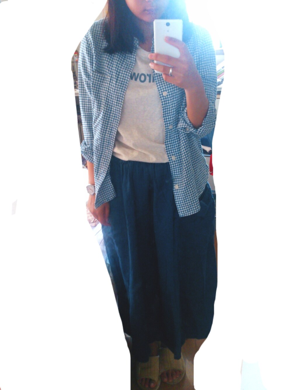 050723♥のシャツ/ブラウス「九分袖ギンガムチェックシャツ」を使ったコーディネート