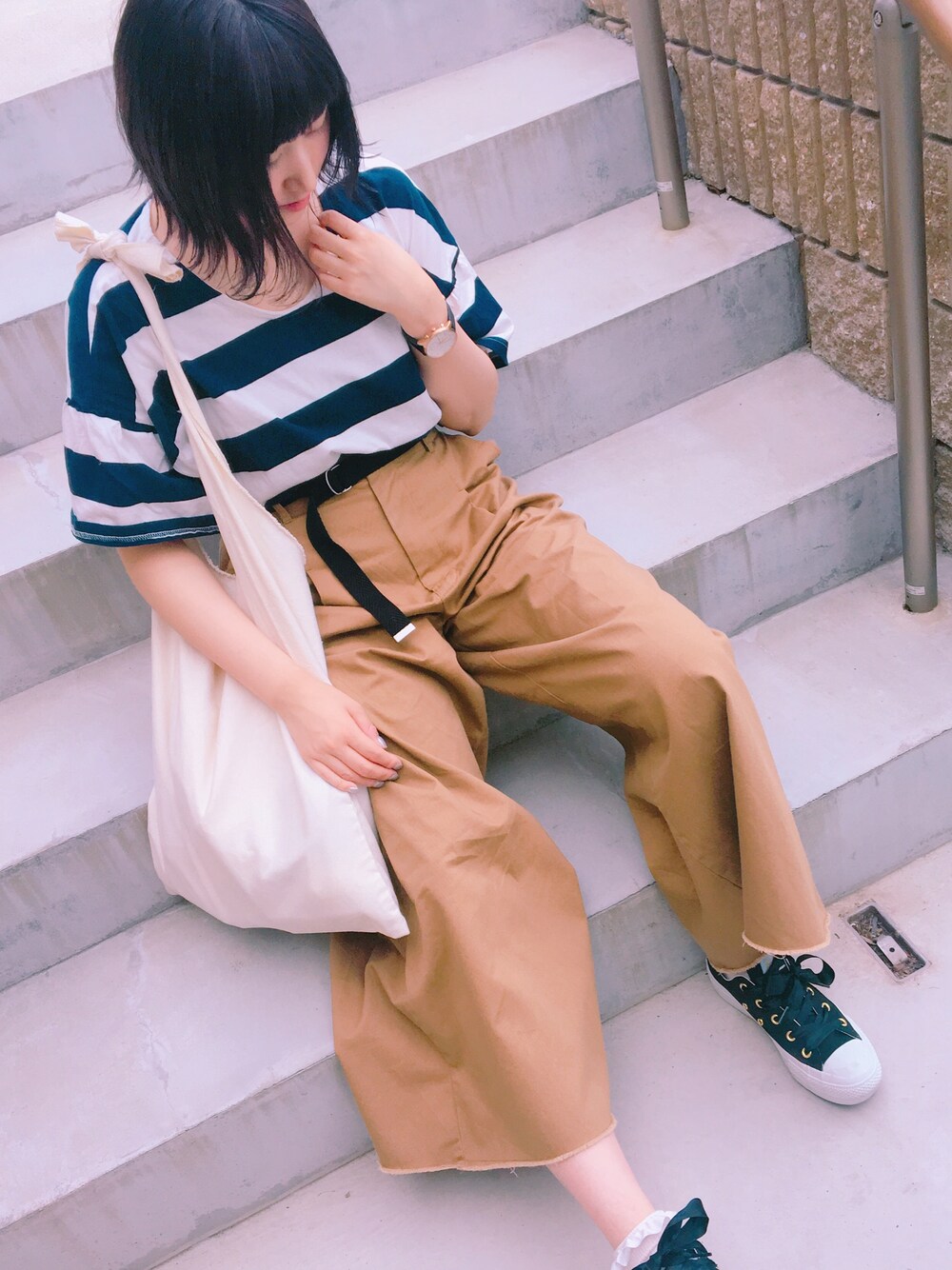 今日はゆるーくお出かけコーデ🤔 最近すごく暑くなってきましたね😩 前にも載せたボーダートップスは1080円! かなりお安めなのに全然ヨレてこないし 二の腕も隠せるのにこんなに可愛い💗 パンツはKBFのワイドパンツを 合わせました💗