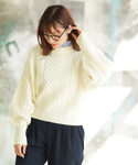 あさぽんのニット/セーター「ウール混ボリューム袖ケーブルニットプルオーバー」を使ったコーディネート